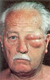 Severe allergic reaction to the Australian paralysis tick Ixodes holocyclus. A larval tick was attached to the upper left eyelid for several hours only. Swelling and redness lasted for several days (Moorhouse, 1981)